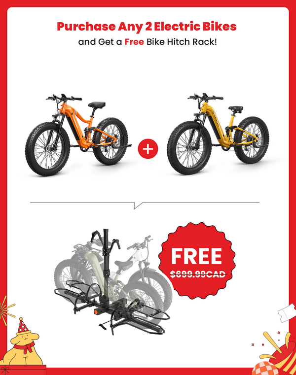 Ride Together, Save Together! Purchase any two E-Bikes and get a Free Bike Hitch Rack. Experience double the thrill, double the freedom, and double the joy of riding!