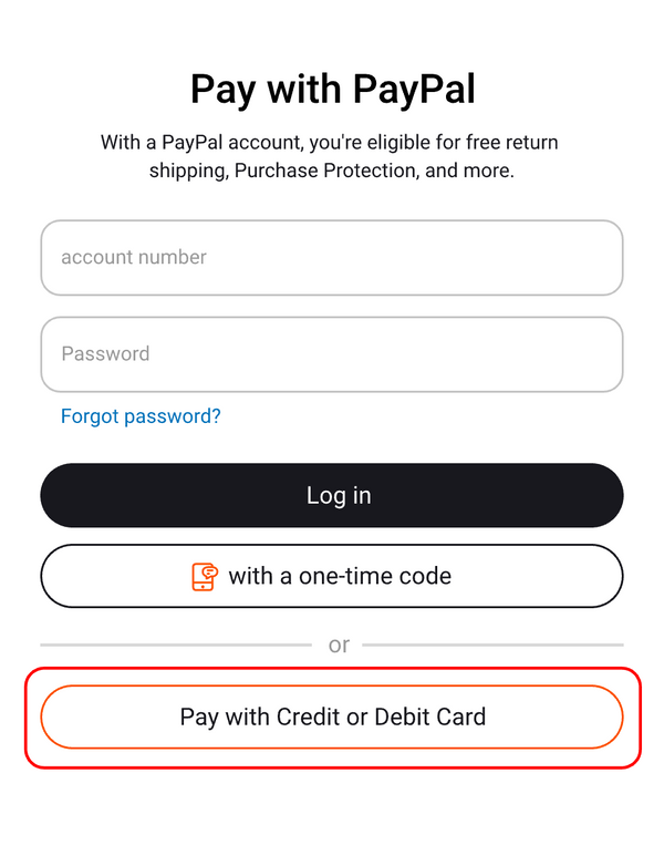 If you choose to use Paypal for checkout, you will have to login if you have an account, or choose the option below to proceed as a one-time payment.