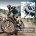 The powerful 26” * 4” fat tires offer exceptional traction, enabling you to enjoy an unparalleled riding experience on sand, rocks, and snow, pushing the boundaries of conventional riding.